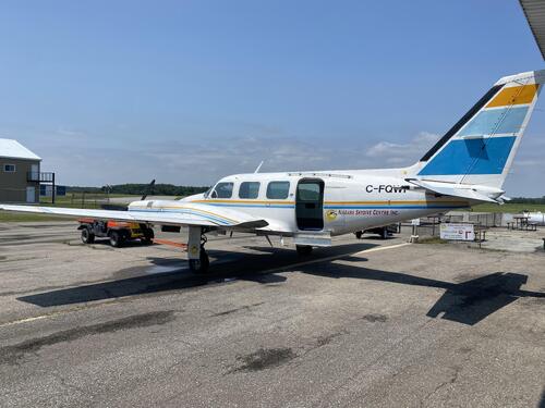 This is a good skydive aircraft, we have operated it since 2010. It is an economical alternative to a turbine and carries 10 jumpers. Turnaround time to 11,000 is 30 min and burns 90 to100 liters of av gas. It has all you need for that medium size DZ or great second aircraft for larger DZ. Commercially registered and operated in Canada with Limited STC for jump modification.