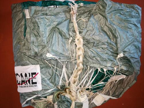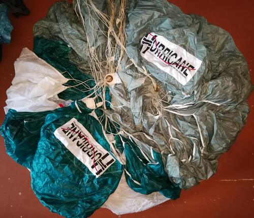 2015 manufactured ParachuteSystems elliptical Hurricane 135 with just only 100 or so jumps on the canopy and original lineset. Canopy's perfectly suitable as a first elliptical main canopy. No damage or imperfections of any kind. She's been well taken care of and looks/feels almost brand new – not much else to add. Colours are exactly as per colour scheme attached to this ad + ParachuteSystems logo on the bottom skin white panels. Pics available upon request. On soft links.