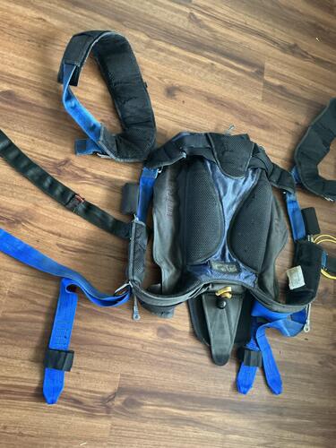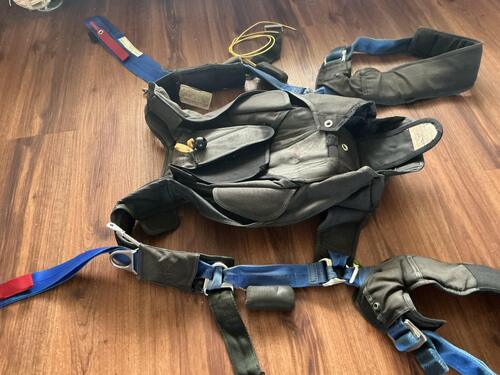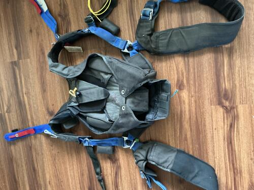 In good condition, has about 1400 jumps. Fully Articulated Harness, stainless hardware, spacer foam back and legs, BOC, xtra long chest strap. For someone 5’7” to 5’10” @ 160-195 lbs