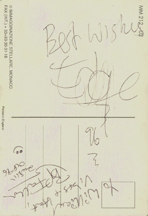 skreamer 1 #98 June 15, 2003 I lived in Dublin for a couple of months in 1996, met Adam Clayton and The Edge in the Mean Fiddler (Howie B was guest DJ). Had a drink with Edge and got his autograph (see attached). Really nice, laid-back guy. I asked him if they were planning to play South Africa. He said they would on the next tour (which they did in 1998). He then started asking me about South Africa - really insightful questions like 'What did I think would happen when Nelson Mandela died?' etc. It was cool because when we were done chatting, I walked off and he was still chilling out, didn't get the impression I had bothered him at all. (have also met Arnold Schwarzenner and Buzz Aldrin, but only briefly) Quote Share this post Link to post Share on other sites