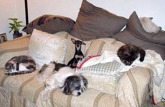 airann 1 #34 January 17, 2003 I was minding my own business cruzin on my lap top on the couch with my kiddos and whatz this.... There are so many pictures... I had to switch computers and I am missing Star Trek. Here is one... I have got to narrow the others down to maybe 15 or 20 good ones. This one is on my spare couch. Or the Pass Out Couch. Or aka TrailMix's couch. far left- TrailMix, Levin's cat. Levin only names his cats by colors, Brittany re-named her. It was Multi-Cat. White and calico little funnie one in the back- Ginger-Spike or LittleBitty.... Mother of #1 and #2 2.5 wks old black and white fuzzy guy- Shiz Tzu - Olav Zipster top cat is siamese - Smurfy Smurf (Dan's Cat) black calico or tortuise - Compost or Brownie. My cat and it sleeps in my hair. It puffs up a spot on top munchin my hair with her fingernails. It was cute when she was little. edit- file too big... ~AirAnn~ Quote Share this post Link to post Share on other sites