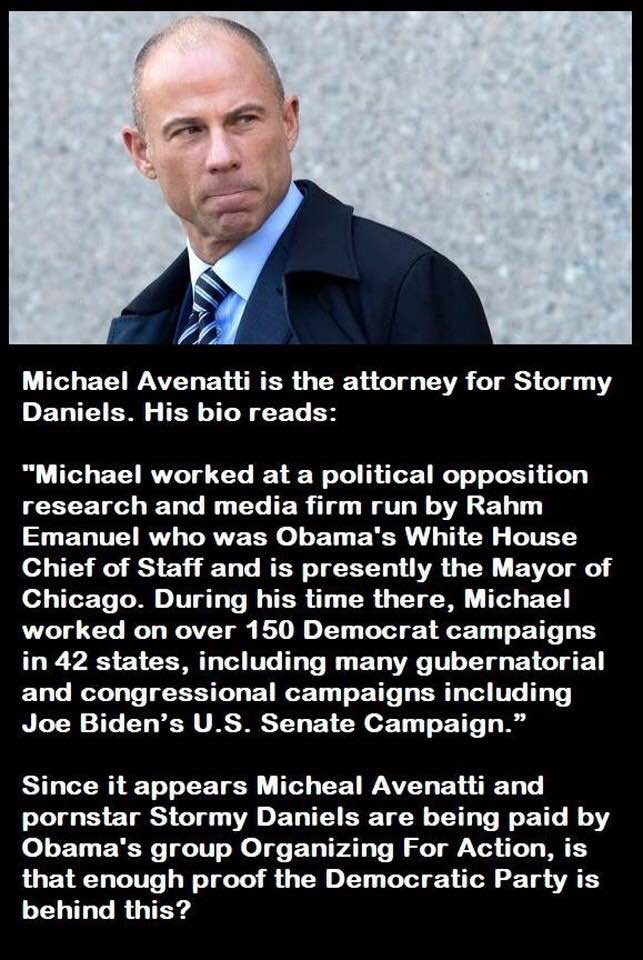 jakee 1,643 #117 May 8, 2018 RonD1120***>Has anyone done a background search on Michael Avenatti the attorney representing >Stormy Daniels? No, but I am sure Breitbart has. Let me guess - he's really a socialist Muslim born in Kenya who wants to grab your guns and impose Sharia law? I just received this. It seems to fit. Why does it appear they are being paid by Organising for Action?Do you want to have an ideagasm? Quote Share this post Link to post Share on other sites
