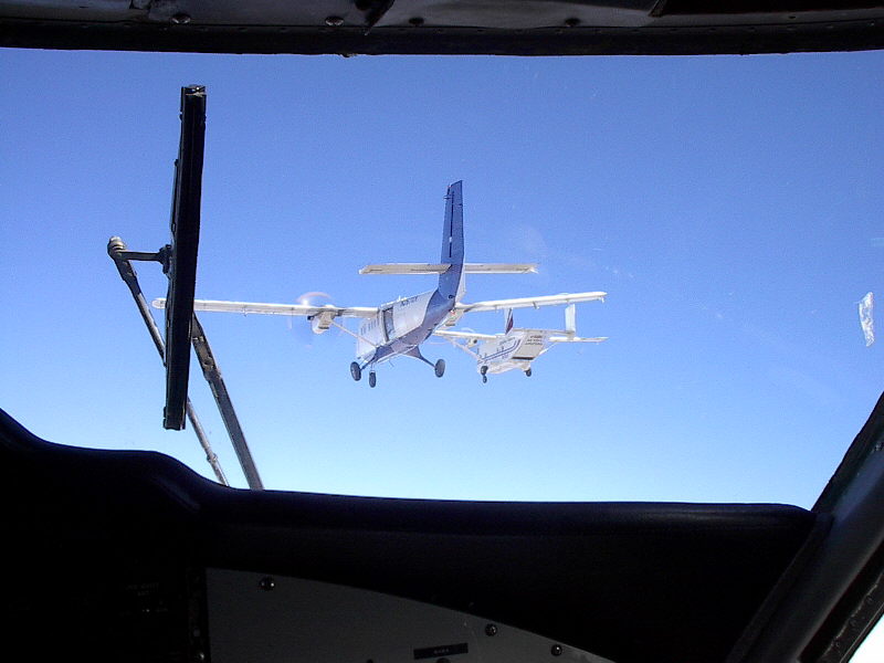diverdriver 7 #1 December 9, 2002 Ok, some photos from Day 2. I flew on the first 3 100-way jumps to work out the final aircraft kinks. There were 3 cycles of 3. A different set of otters flew on the three cycles to let everyone get set. The formations came together much smoother today (as expected). We had one glitch with a plane too high on the Skyvan so they left late as they could not see the van unload. Problem fixed. We also practiced our takeoff and landing procedures for the 300-way. We are using the main runway AND the taxiway for departures and landings. It is much faster and effecient. With 14 planes launching this should be interesting tomorrow. There is going to be one more practice load for the 100 way base. So the first 300-way will go up late morning. The pilots will be doing their own "dirt-dive" after this 100-way load getting reading for the taxi out and departure on the 300-way. It's a lot of turbine burning engines so we want to be effecient. I hope we get video cuz this aught to be a hoot. Well, getting tired so I'll just end it there and post some pictures.Chris Schindler www.diverdriver.com ATP/D-19012 FB #4125 Quote Share this post Link to post Share on other sites
