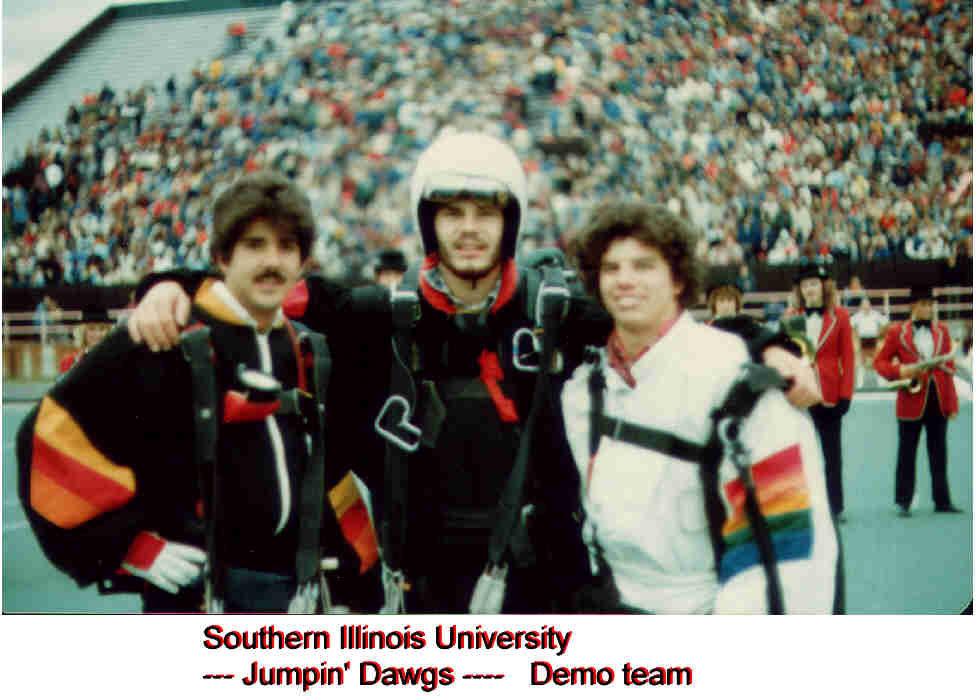 airtwardo 7 #87 June 7, 2003 QuoteYou tell the best stories, Artwardo! Keep them coming.....Steve1 Well.... Okay, If you insist. I was looking through some old pictures, trying to find one of my trusty old Para-Plane for another thread in this section. When I came across some old pics that reminded me of a jump that was less scary for me than everyone else there. File this one under: Better to be Lucky than Good! A little background- It was 1979 and I was the Captain of the " Jumpin' Dawgs" Southern Illinois University Skydiving Team. A few of us on the team had the credentials and skill to do demos, and we'd worked out a deal with the university to perform at many of the home games as a warm-up to the festivities. At different times I'd brought in the 'Game Ball' , dog biscuits for the school mascots, the head coach's 'missing' game plan.... Rah Rah stuff. It got our club attention, which increased membership...which fattened my wallet, since I'd worked out a deal with the local DZO for a nice cut of all the static-liners I brought in a taught. The game in question was a most special opportunity for us as a team ...and me in particular. It was the Home coming game for that season, and despite the lousy team we had. It was to be a monster event in town. It was also Parents Day, meaning not a lot of empty seats in the stadium. And...for the first time ever! We would be jumping at half time instead of as the warm-up monkees. The day of grand expectations had arrived... I'd gone to what for me at the time, were extreme measures to; "Pull off a crowd pleaser" -My folks had driven 350 miles to check out where all the money was going... Got them front row seats for the game. -Stayed up most the night prior to see that the pilot buddy we convinced to 'borrow' a university plane was suitably lubed to follow through. -Utilized my by then well honed skills with whiteout and a copier to make all pertinent paperwork in order. (is there a statute of limitations on USPA insurance fraud?) ....ahhh just kidding. - Re packed my reserve in the trunk of my car. - made DAMN well and sure that this Tall, Blonde, Bumpy in all the right places.... (get this) CHEERLEADER type, pixie babe... ...that I had met at a party two nights before, and played slap & tickle with most of the early morn with... before being thrown out sliding into third... ...whom, I quite slyly I should add, agreed to... 'drop it on' for part of the game and watch her cheer on the team, ...was still expecting me to come see her steal the show with her new routine. ...3rd base my ASS! I had some show stealin' to do myself!! -A lotta guys don't like to jump smoke...it can be messy and is a little dangerous. I'd jumped a lot of smoke...even back then, with the demo team from my home DZ. Problem was, the club was 350 miles north and so were my smoke brackets. A fellow team member and engineering student, had contrived the smoke bracket to end all smoke brackets... and agreed to lend it to me for the day. The thing was beautiful; stainless, aluminum, heavy nylon webbing... ....and safe! Three separate ways to cut it away if there was a problem. You could even set it up to fire the 2nd smoke with a kick from the other foot! ( these engineer guys are something, us undeclared dudes just party and chase babes) All pretty much going to plan... If you don't count that odd color the pilot face keeps turning. ...And why's he keep askin' to borrow my helmet? We had some trouble strapping him in the plane, so now we're a bit late, no time for a wind drift. I can see the flags on the stadium and they're still... The 1/2 time whistle has blown, the band is beginning to form into the diamond shape that it will hold until we touch down within. At 3500 feet ... Dead nutz over the 50...CUT!...C-YA!! And we're off- 5 second delay... ripcord out... (yes, a ripcord!) ...canopy check, The other two guys begin to form up on me... I "am" the Captain after all! I reach down to fire one of the two yellow smokes...and... HOLY SHIT!!!! ...There it goes! The bracket to end all brackets has performed flawlessly! ....pull the grenade pin, it and figures your in trouble ...breaks apart into the 3 purposely designed, masterly machined, close tolerance matched pieces. And with the burning M-18 showing the way... Is now screaming down toward a statuim full of waiting to be impressed people. My initial emotion was terror... - All demo jumpers know rule #1 : don't hurt anybody! To religion... -God I hope it doesn't hit anybody....That I know! To the skydivers standard, Gallows Humor... -It'll smack the blonde pixie right in the melon, ..no real threat of damage there! ...but it will ruin her 'routine' and I'm never gonna get a chance to break Roger Marris's record! (remember, this was '79...Mac was still in rubber pants) I'm drifting way out of position watching the end of my career unfold ...the other two guys blissfully unaware of my minor mishap, are yelling to me to "spin it down!"... ...spin it down... ..hell I might as well just cutaway and track for a soft spot on the blonde. ...nobody would even mention the smoke bomb if I did THAT! At around 1800 feet I'm right over the goal post. ...south side of the field. A yellow cloud seems to be emanating from near the wall behind the posts, It's definitely inside the stadium ...but looks like nothing going on in that area... Surely if id beaned a customer, there would be some frantic activity there... right ?! Maybe, with all this clean livin' I dodged a bullet.... We all three landed safely, on time and on target ...just as advertised! The crowd went wild...the band was relived! ( looked nervous as we pounded in among 'em) Dragging our gear to the sidelines, I curtly explain to my fellow skygods just how well the jump REALLY went. When... off in the endzone...POP! ...smokebomb # 2 starts burning... ( Hey!...the auto-kick start really works! ) Maybe if we ignore it, it will just all go away... ...I'm packing on the track that circ
