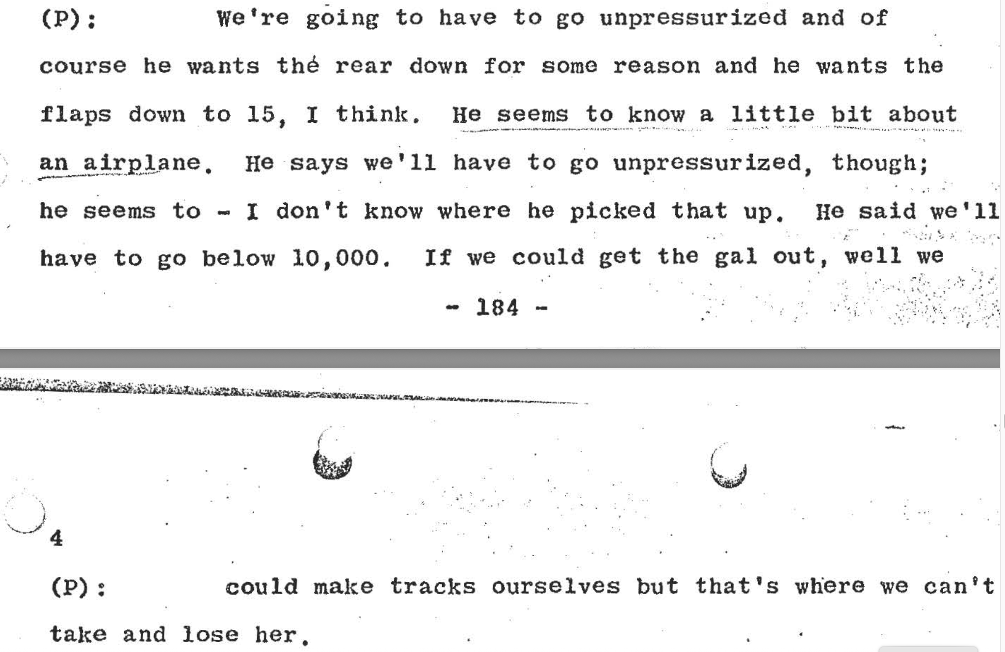 Kamkisky 30 #66048 August 16 33 minutes ago, FLYJACK said: Crew indicated that they wanted to take the coast. later decided V23 Crew was not clear on flight configuration.. Wind Seattle from the South... Cooper didn't know the wind where he jumped.. Poor visibility,,, can't assume Cooper could identify his location from the air. Yes. They thought about it. And clearly they weren’t thinking like a parajacker, they didn’t even know why he wanted to be unpressurized. Just because they hadn’t put the dots together doesn’t mean Cooper would have been cool with a coastal route. There is exactly zero reason why a parajacker would want a costly route over the rugged PNW coast at night. Not a single reason. There however many very good reason to tell the pilots no if they tried it. Quote Share this post Link to post Share on other sites