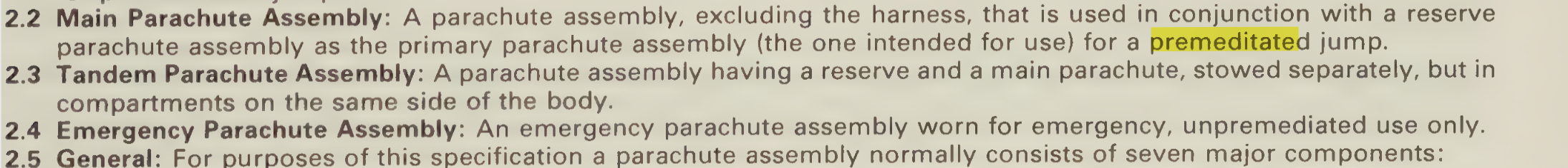 FLYJACK 785 #66043 August 16 Main parachutes are "premeditated",, indented to be used Emergency chutes (Cooper's pilot bailout rigs) are "unpremeditated" (typo) not intended to be used Quote Share this post Link to post Share on other sites